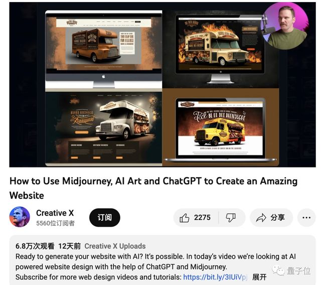 更多小众领域也有应用,有人用AI做室内装潢设计以及网站设计,还在油管分享教程。
