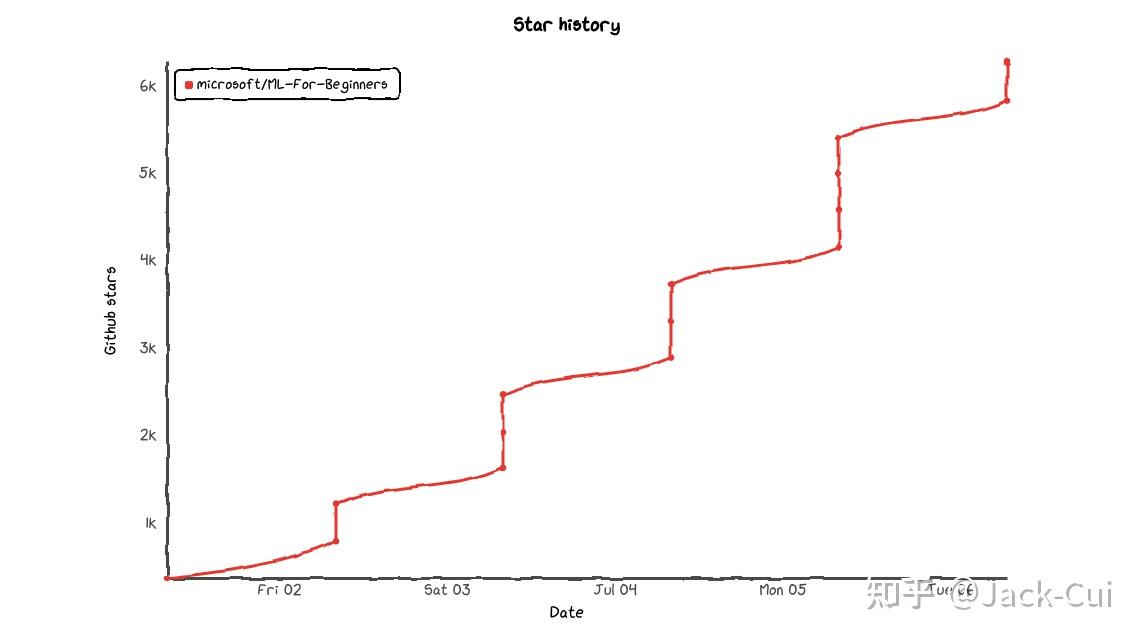 没错,这是微软开源的,一个机器学习教程,阶梯式暴涨: