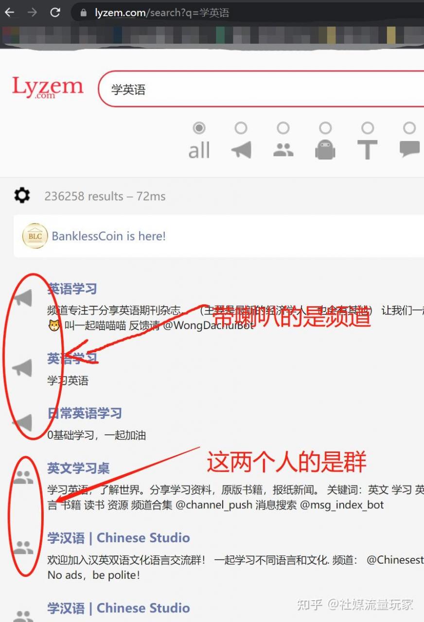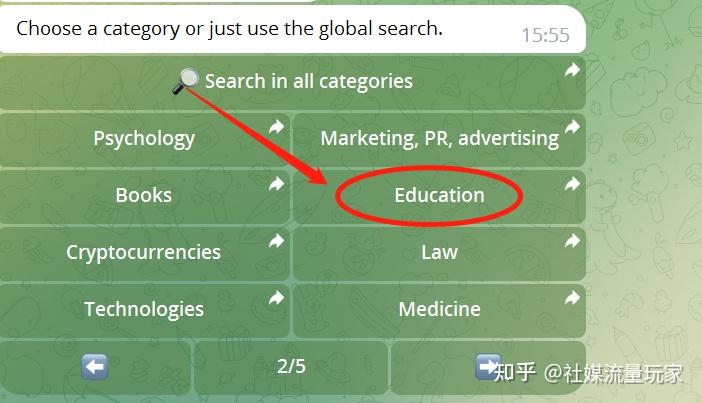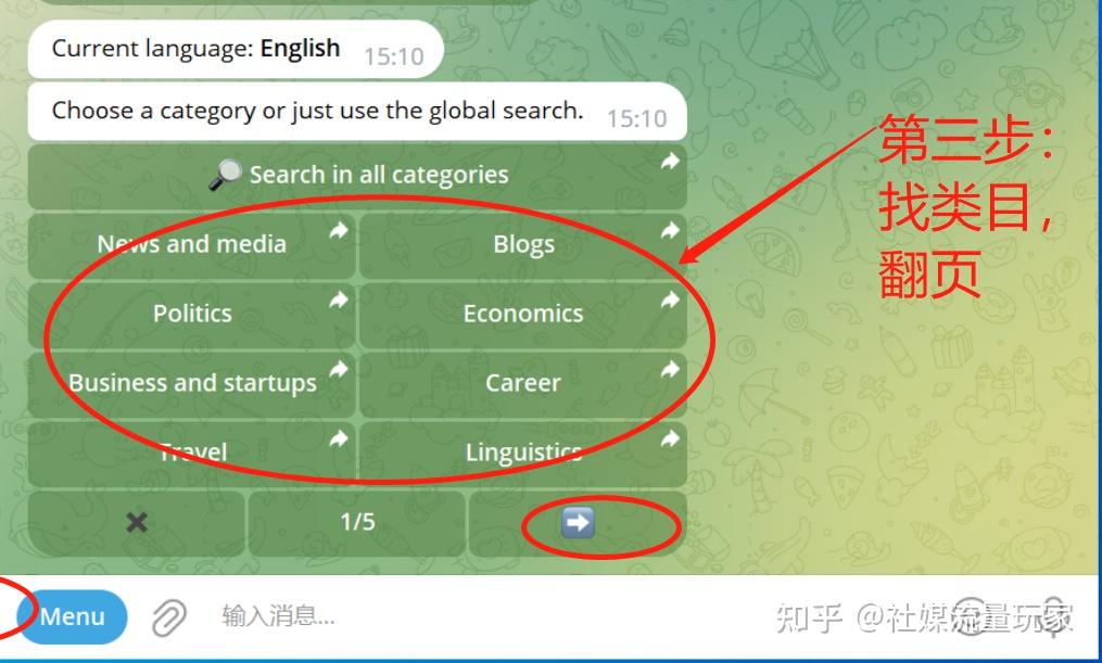 这里都是英文的,因为俄文和其他几种语言楼主也不会,所以就根据上面的英文提示去找自己想搜索的话题箭头部分是可以翻页的。如果你英文确实也不好,可以用一些在线划词翻译的工具去看一下这些关键词都是什么意思,PS:小译、科大讯飞、网易有道都能用,另外充个telegram会员也能自带翻译功能。