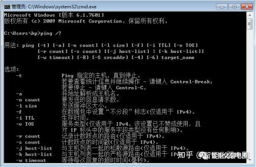 它是用来检查网络是否通畅或者网络连接速度的命令。它所利用的原理是这样的:网络上的机器都有唯一确定的IP地址,我们给目标IP地址发送一个数据包,对方就要返回一个同样大小的数据包,根据返回的数据包我们可以确定目标主机的存在,可以初步判断目标主机的操作系统等。在 DOS 窗口中键入:ping /?回车。所示如下帮助画面: