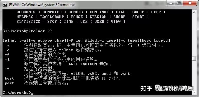 功能强大的远程登陆命令,几乎所有的网络工作者都喜欢用它,屡试不爽。为什么?它操作简单,如同使用自己的机器一样,只要你熟悉DOS命令,在成功以administrator身份连接了远程机器后,就可以用它来干你想干的一切了。下面介绍一下使用方法,首先键入telnet回车,再键入help查看其帮助信息。