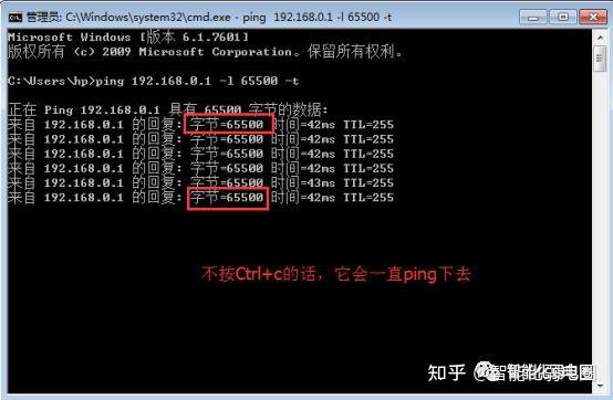 -t 表示将不间断向目标 IP 发送数据包,直到我们强迫其停止。