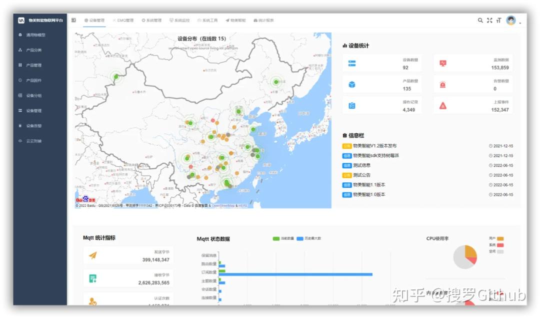 - 其他功能:多租户、统计、新闻资讯、通知公告、支持TDengine时序数据库