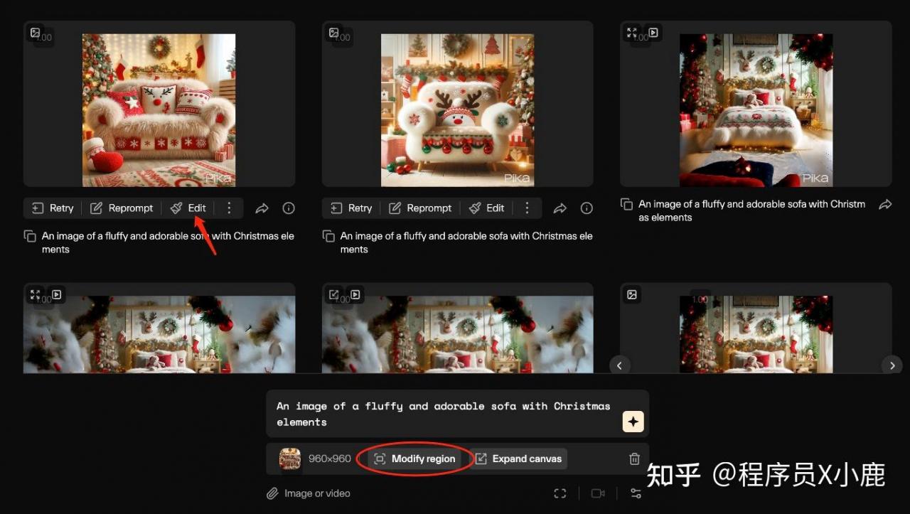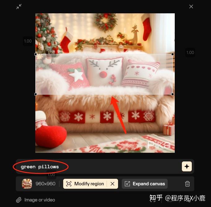 比如,如果想将抱枕改为绿色,就圈住抱枕,在输入框中输入 green pillows。