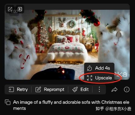 点击「Upscale」后,重新生成的视频,画面看上去更清晰、画质更高。
