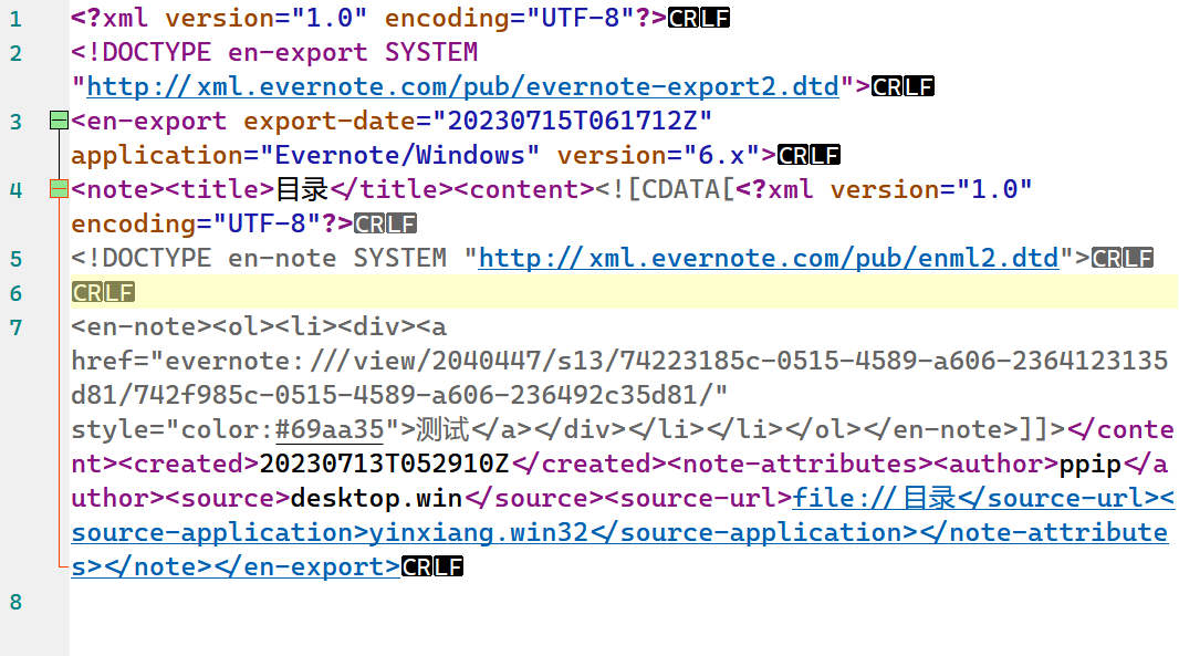 我们观察一个 .enx 导出文件就可以看到,内部用的是 <a href=”evernote…”> 这样的标签: