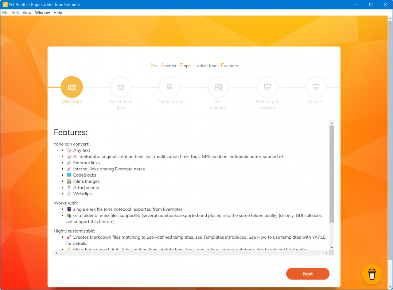 随后我们就得到了一堆 enex 文件,有两条路径转换为 md 文件,Joplin 或者 Yarle,都有图形化界面。