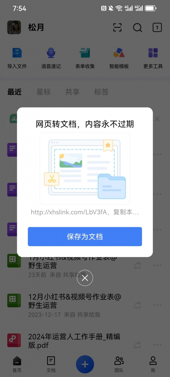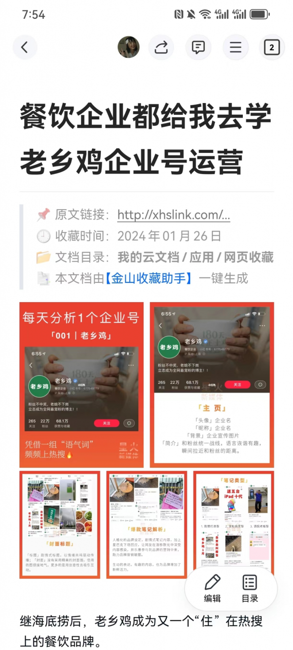 3、金山文档APP,帮你采集小红书爆款内容,形成自己的选题库