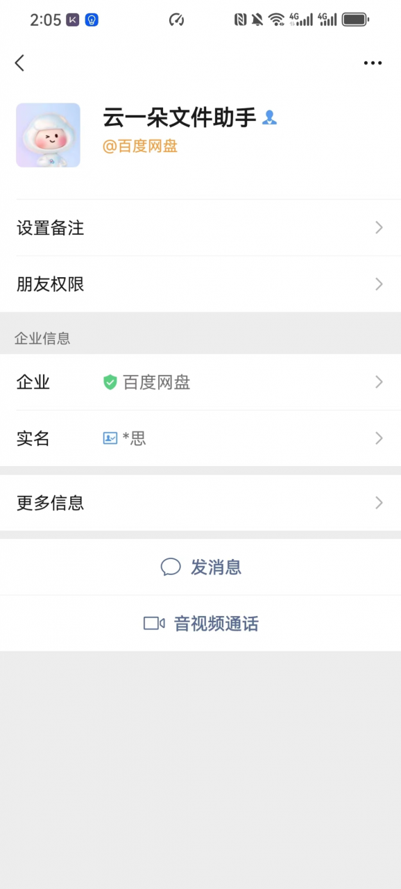 1)在微信搜索栏中输入「百度网盘服务号」,进入它的后台,并添加她为好友
