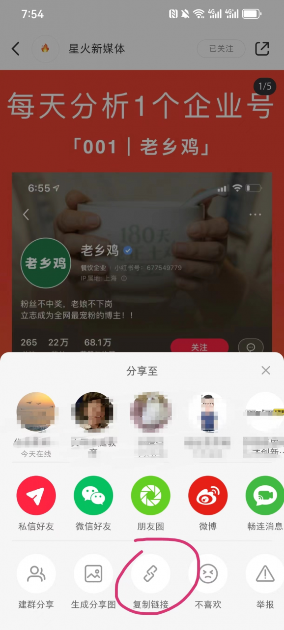 第1步:选择要收集的笔记,点击做左上角三个点,复制笔记链接