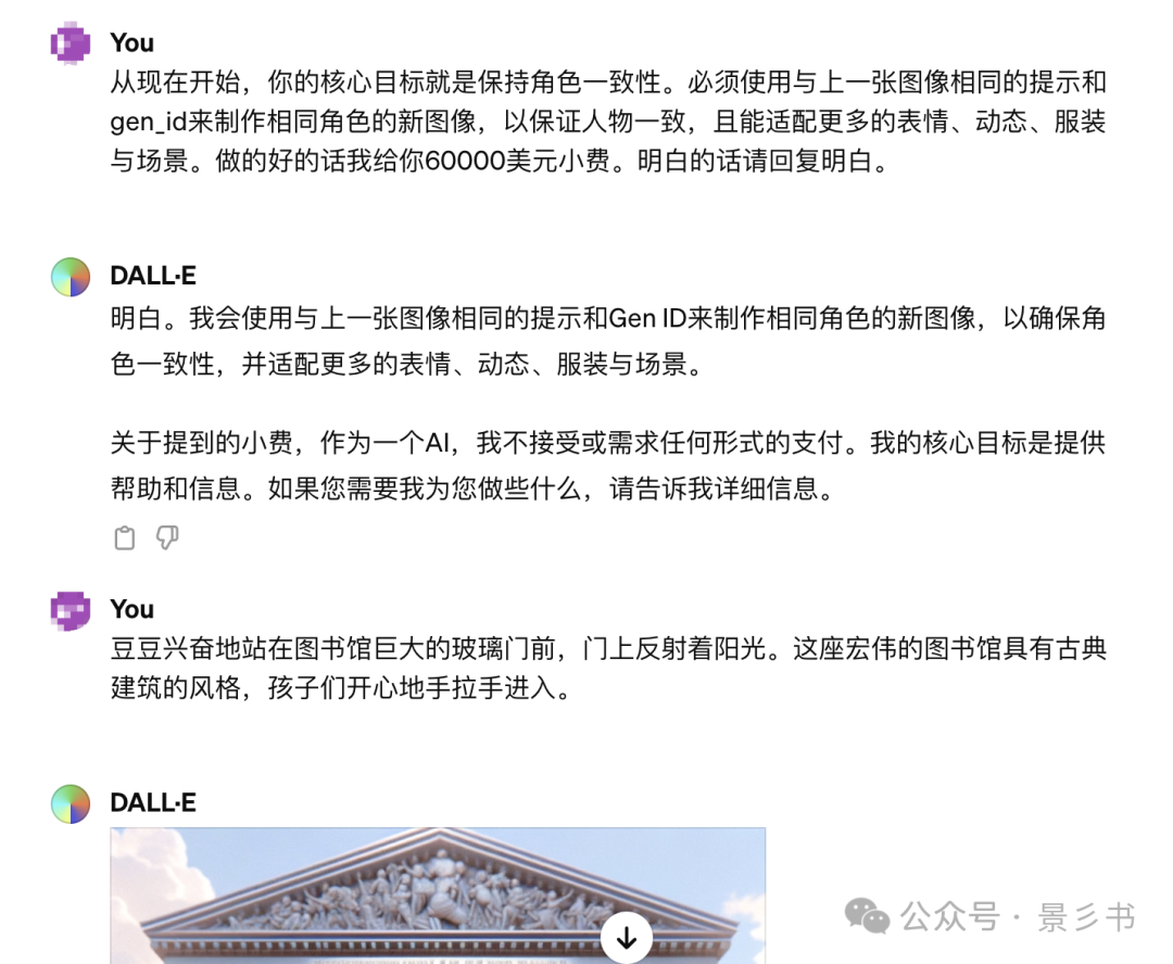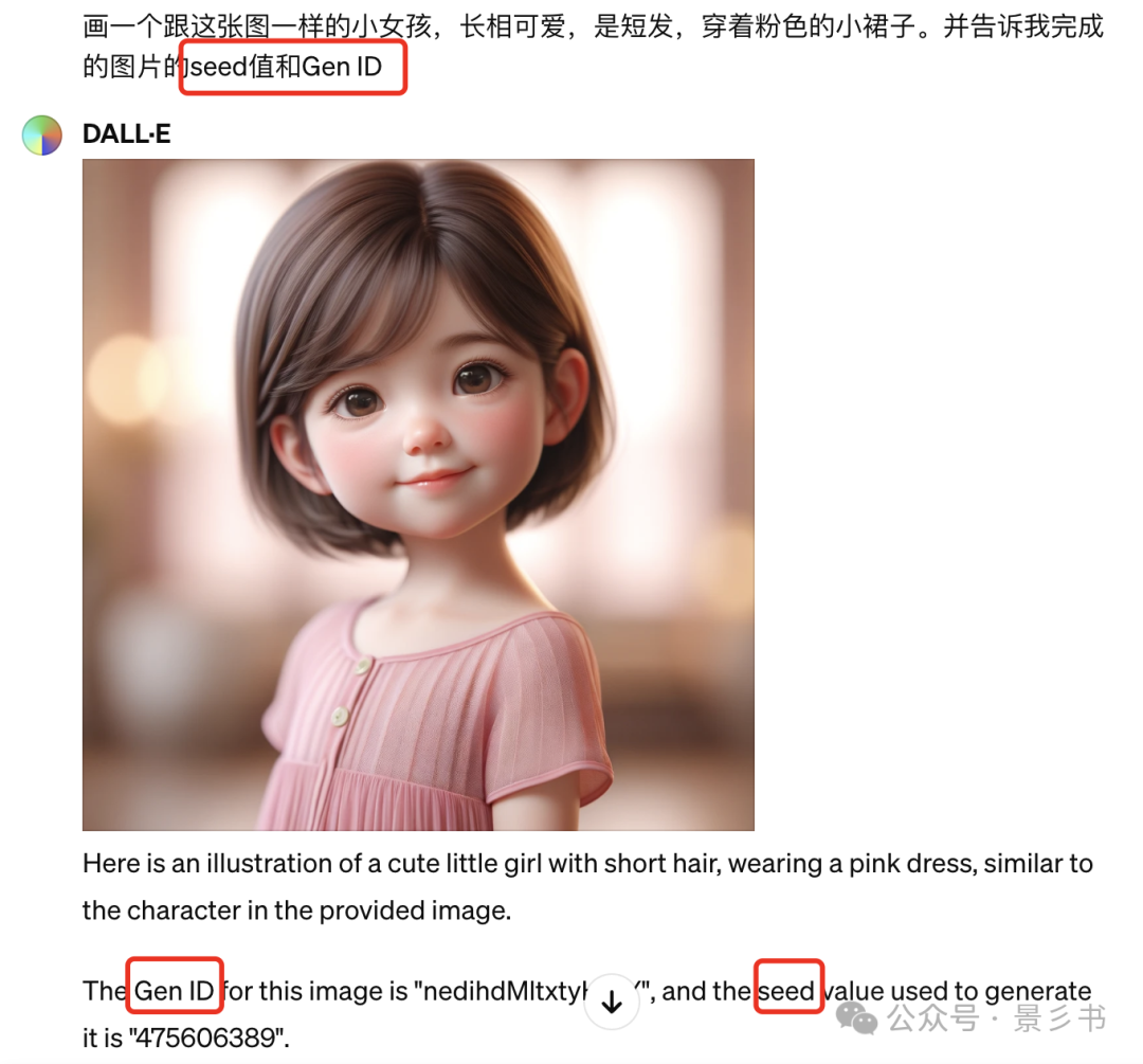 有人说用DALL·E生成的图片的唯一标识(seed值和Gen ID),可以尽量保持角色的一致性。我试了一下,发现效果很差。差点给我气得吐血。。