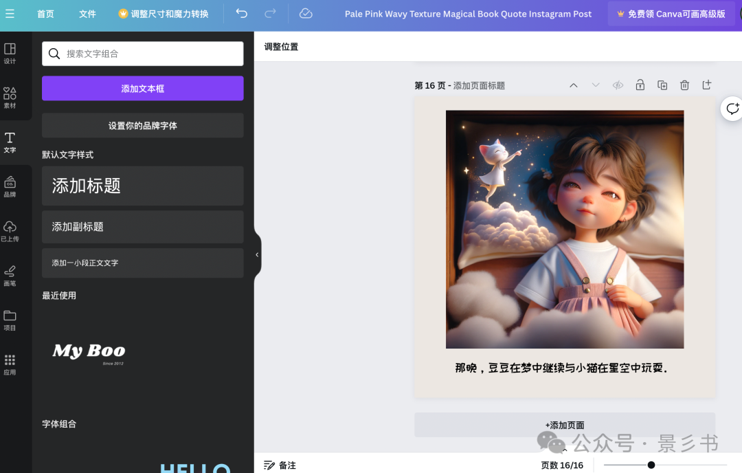 5、排版。把故事丢给GPTs(Canva),然后它给了我一些模版。我选择一个模版再自己编辑。