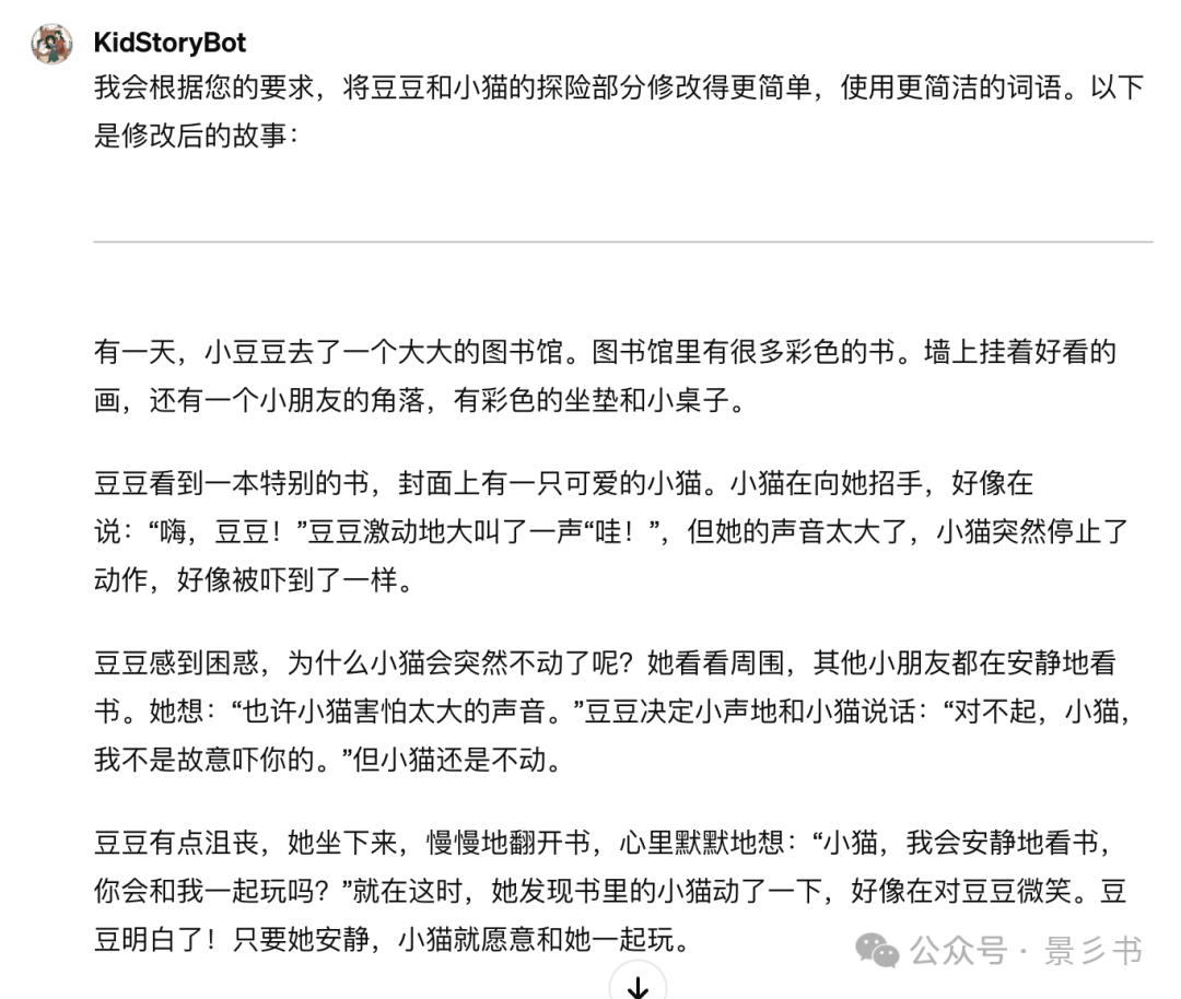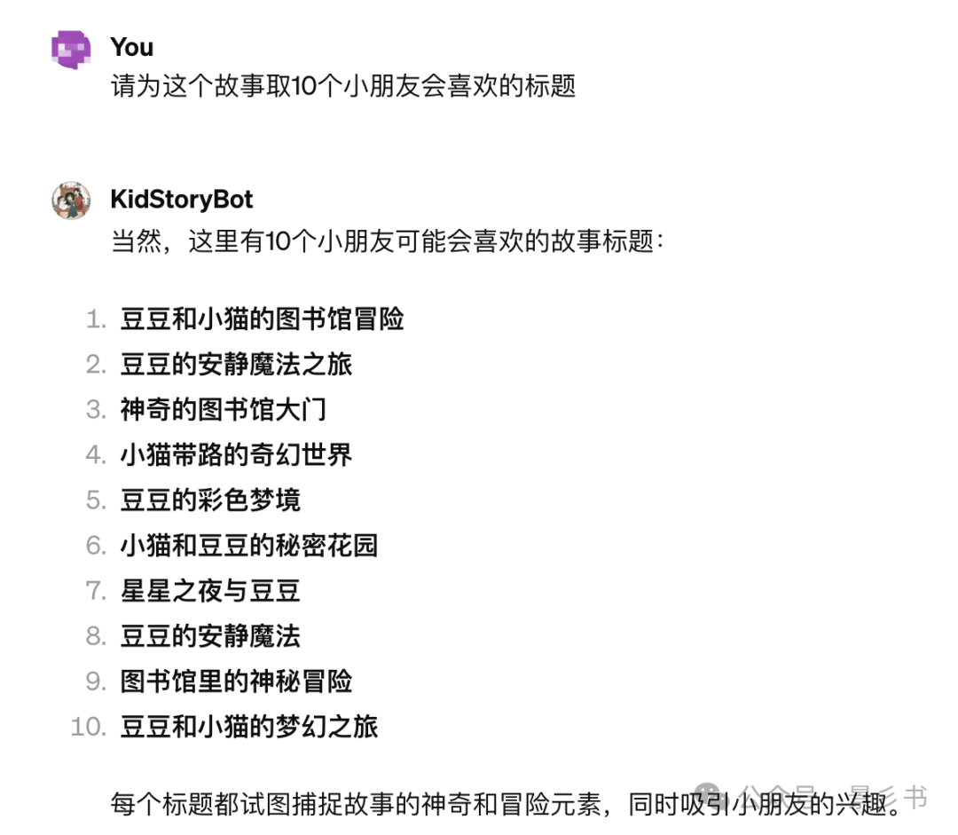 3、将自己修改后的完整故事,给另一个GPTs润色一下(比如这个KidStoryBot)、取个标题,使其更适合儿童阅读。