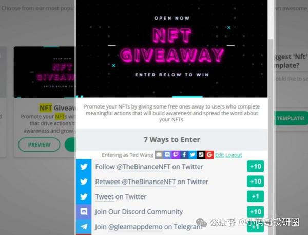 项目方举办抽奖进行Giveaway,参加者完成多项任务来获得”门票”,并在时间结束后抽出。