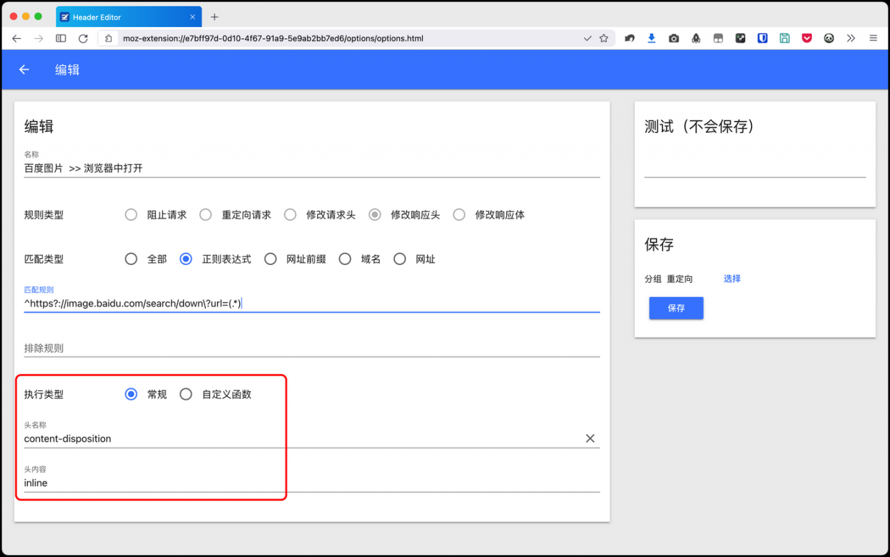 我们还是可以利用 Header Editor 来让图片在浏览器中打开。