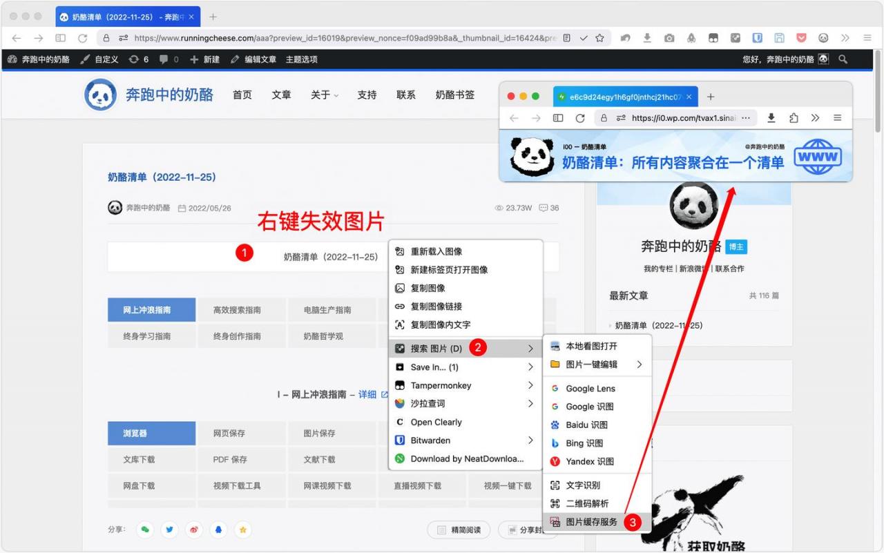 而如果被限制访问图片来自一些小众网站,我们还通过“图片缓存服务”来让图片临时恢复显示,具体方法: