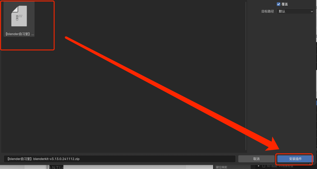 在弹出框中选择你下载好的插件zip文件,点击安装。