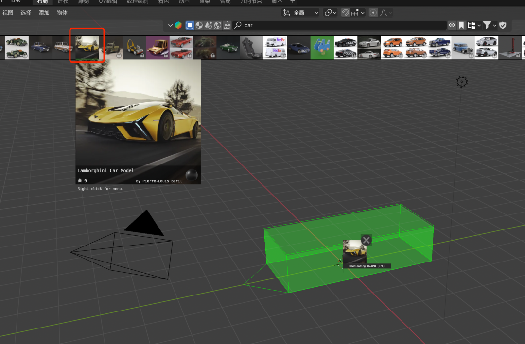 等绿色的框加载完毕后,一个酷炫的跑车就出现在你的场景里了。