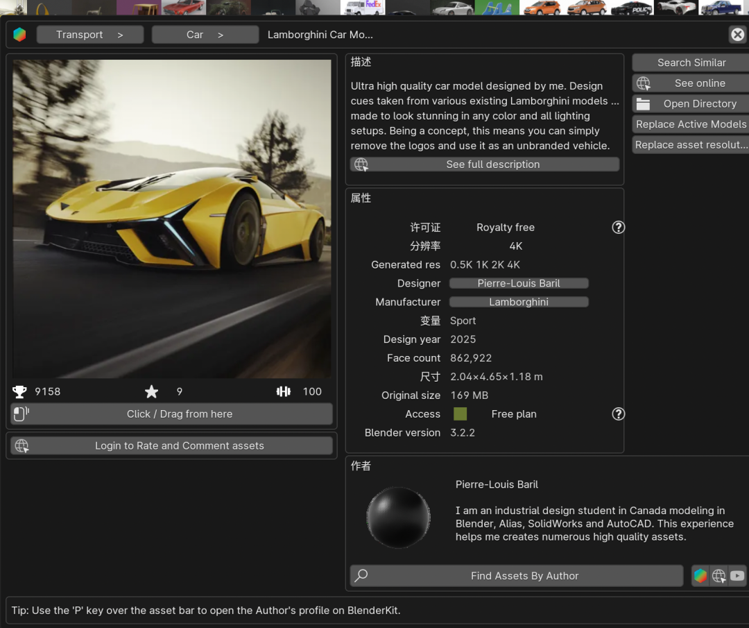 2017年,一群热爱blender和开源的朋友在捷克共和国组建了blenderkit团队,第一个插件版本发布于2018年。这个小团队创建了一个由社区驱动的3D资产库,提供了很多免费的素材。