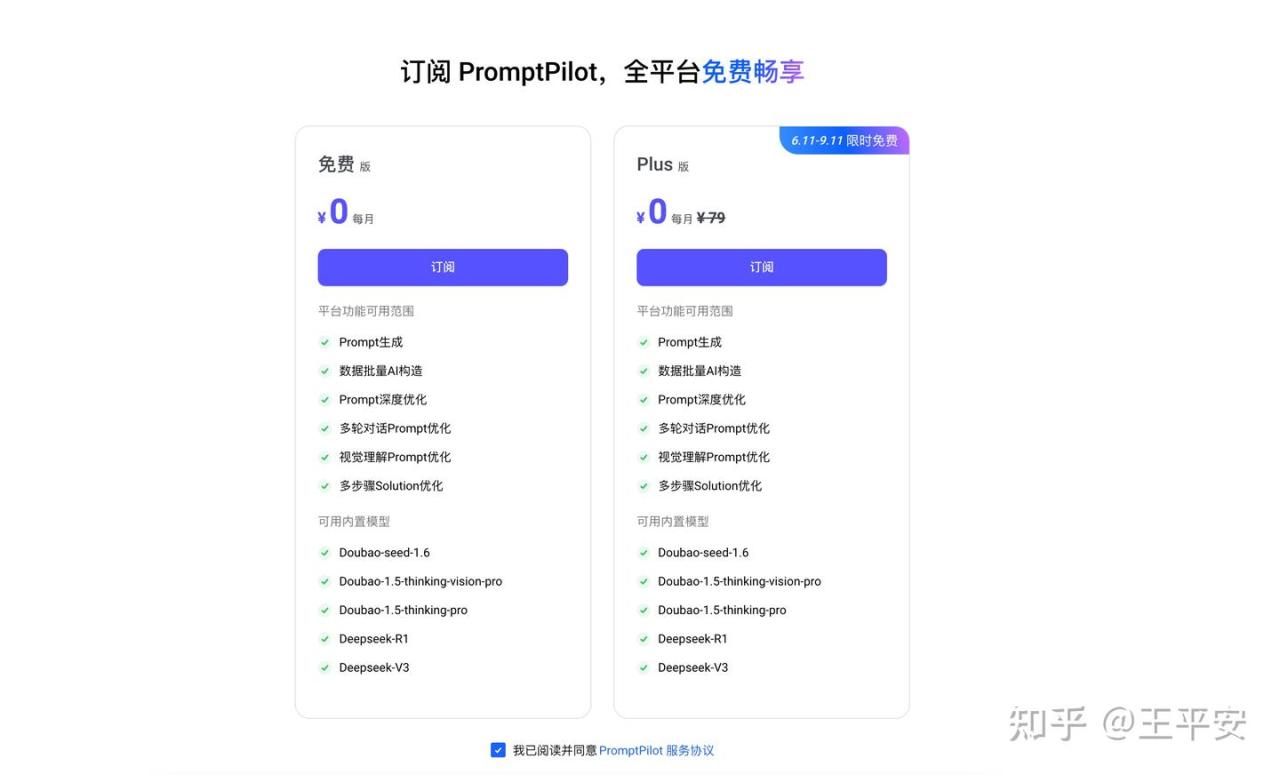 目前 PromptPilot 可以免费体验 3 个月,时间为 2025.06.11~2025.09.11。后续 Plus 会员版每月 79 元。
