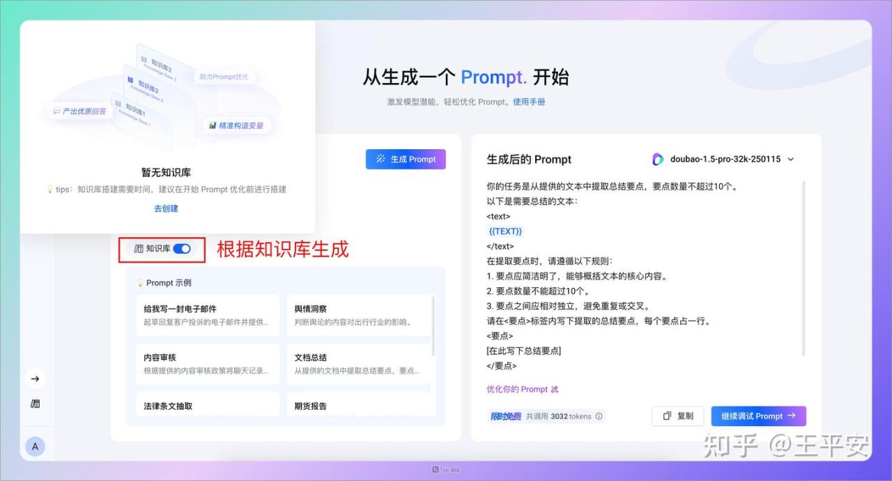 - 使用知识库生成:PromptPilot 还支持选择一个知识库进行提示词生成,Chris 这边就没有演示了。