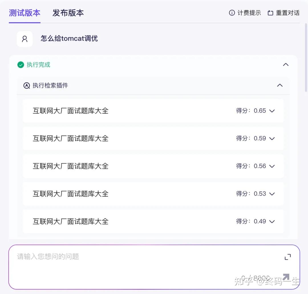 可以看到执行时,会去检索我们刚上传的资料信息,从里面获取我们需要的信息,并加以改进和优化,最后返回给我们想要的答案。