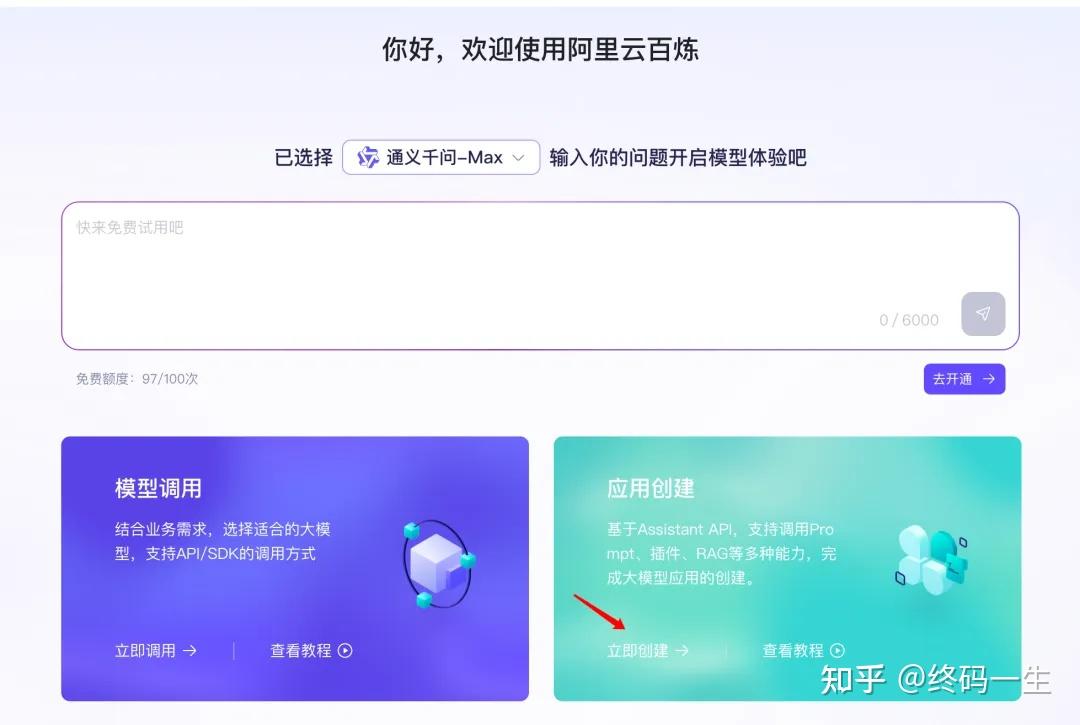 我们可以通过百炼创建自己的智能体应用,在首页直接点击「立即创建」,或者通过控制台,选择「应用中心」-「我的应用」-「新增应用」。