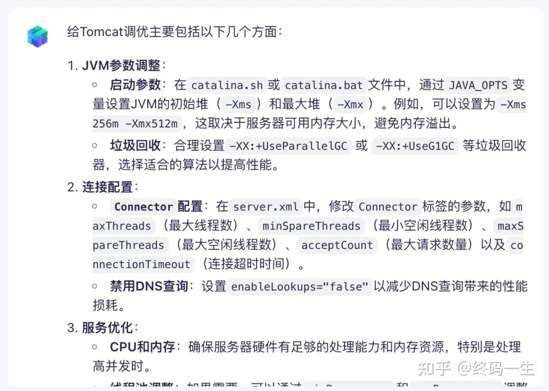 再次测试一下,提问:怎么给tomcat调优?
