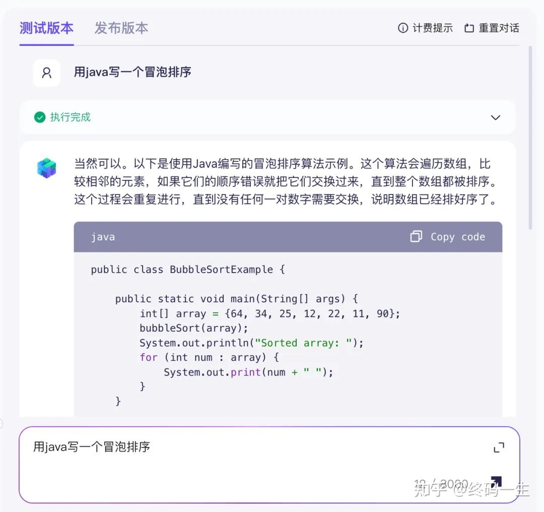 可以看到,测试没有问题,这种简单提问对他来说太过于easy了。到这里一个简单的智能体就已经创建完成了,我们可以发布了,然后在我们的程序中进行调用,下面代码中测试下。