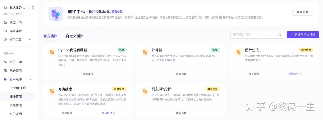 我们演示下「Python代码解释器」插件的使用,因为是免费的,我们不需要申请,可以直接在应用中插入该插件