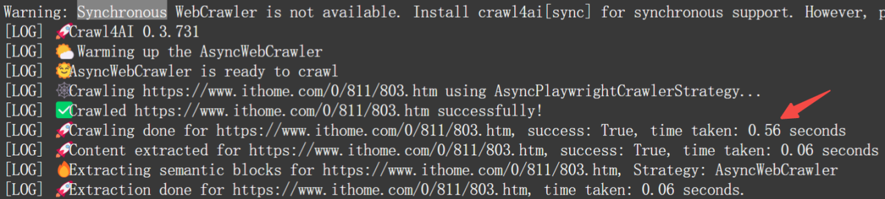 默认情况下,这将安装异步版本 Crawl4AI,并使用 Playwright 进行网页爬取。