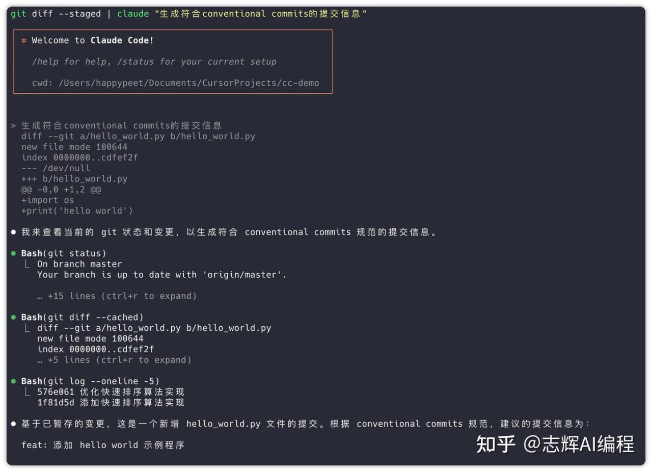 alias commit=”git diff –staged | claude ‘生成commit message'”