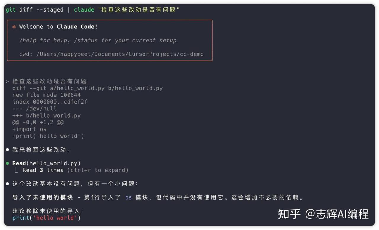 alias morning=”git pull && git diff HEAD~1 | claude ‘总结昨天的改动'”
