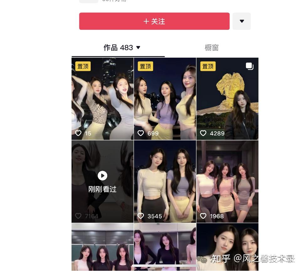 效果是不是很真实的,也可以制作成跳舞的视频,如果没有流量的,建议去抖音搜对标,我至少看过10个账号,数据都是很不错的,比如这个账号是借助AI制作多人的美女视频。