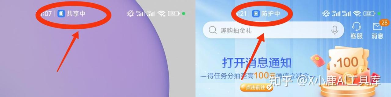 有时也可能出现「防护中」,如上面的右图。
