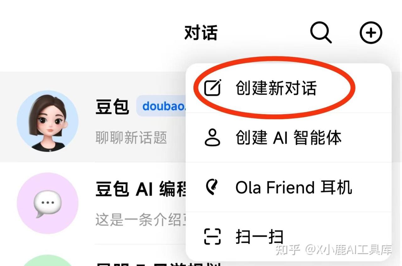 先把豆包 APP 更新到最新版。打开豆包,点右上角的「+」-「创建新对话」: