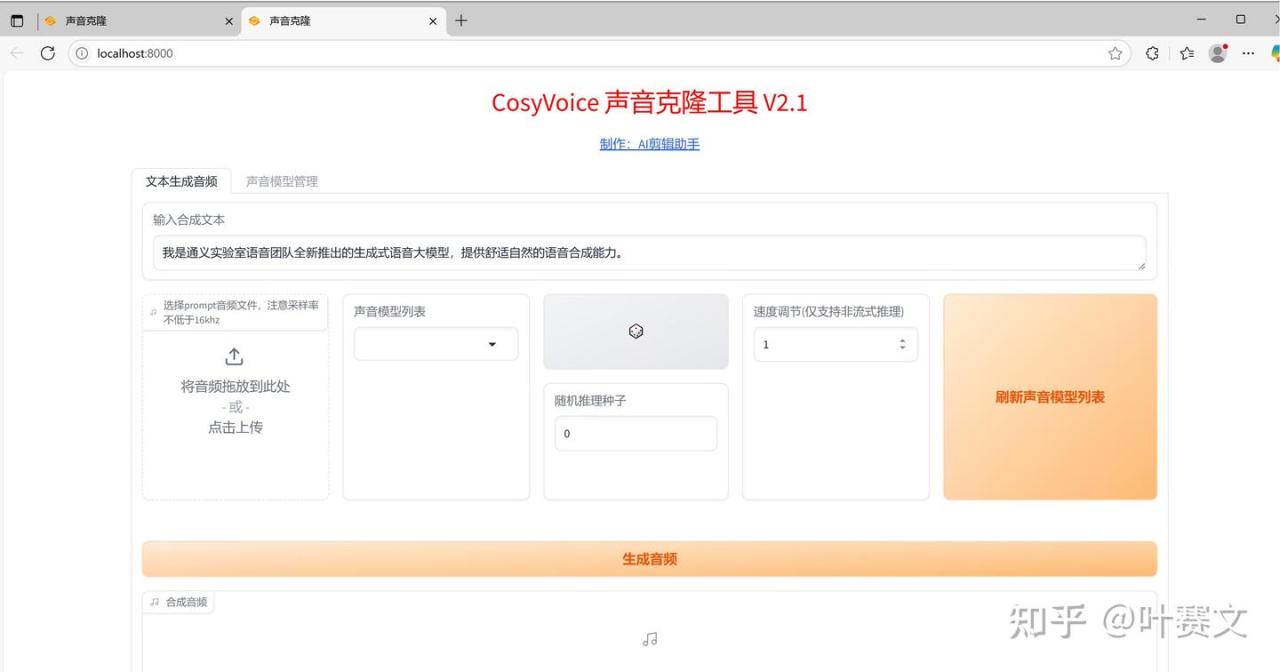 工具说明:使用的是“AI剪辑助手”制作的cosyvoice版本。