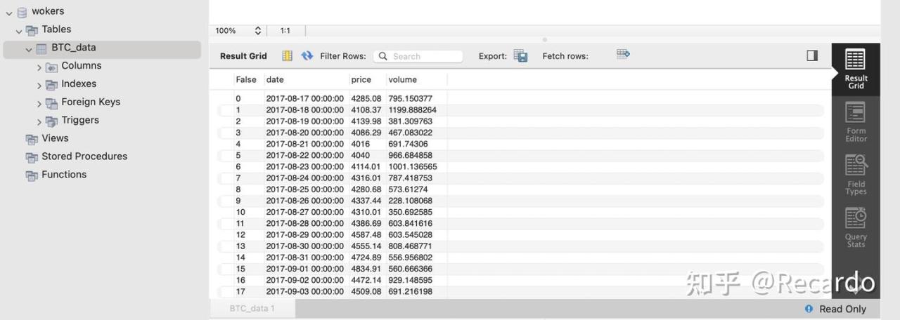 由于币安从 2017 年才开始提供比特币的历史数据,所以我们这张表的起始数据也从 2017 年开始,一直到今天。