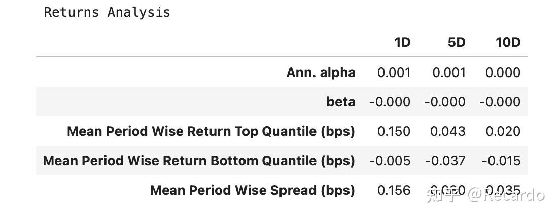 - Ann. alpha:表示年化的超额收益率,是因子多空组合长期表现的估计值。
