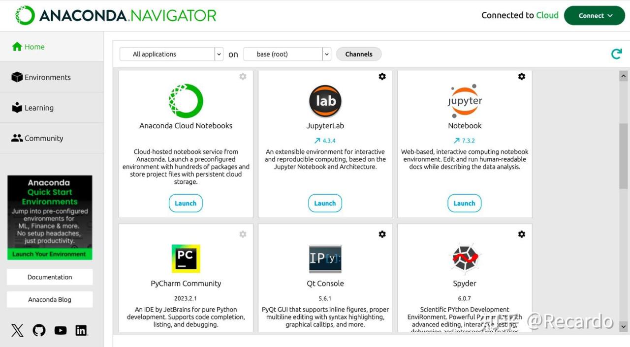 Anaconda集成了几乎所有常用的数据分析与科学计算库(如numpy、pandas、matplotlib、scikit-learn等),相信你一定有过配置本地环境疯狂报错让人崩溃的时候,而在Anaconda,这些环境已被集成为全家桶你不需要一个一个装,也不用担心依赖冲突。对初学者尤其友好,对未来扩展(如连接数据库、爬虫、机器学习)也足够强大。而Jupyter Notebook是我们运行代码的阵地,当然你可以选择其他你喜欢的IDE。