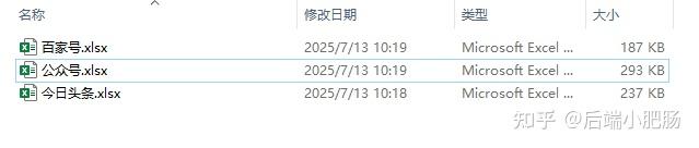 这三个表的字段是一样的,以百家号.xlsx为例,excel数据如下: