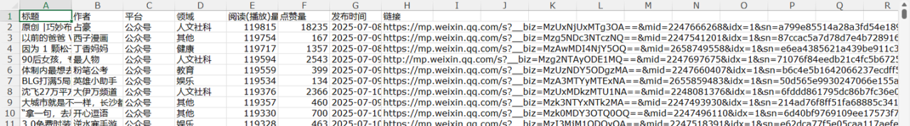 SpringBoot实现部分较为简单,就是excel数据的读取和录入,我这边基于工具获取了7天内三个平台的热点文章数据,我们只需要每个七天更换excel文件即可。
