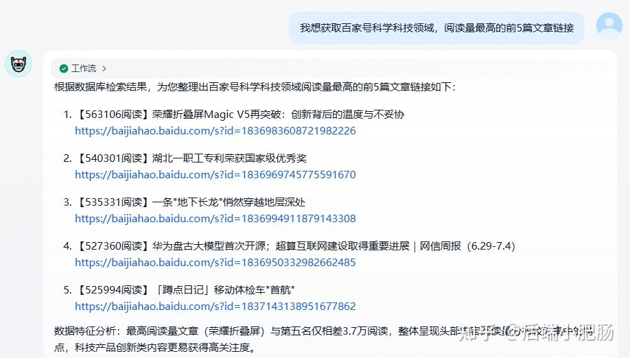 再测试一下,我想获取百家号科学科技领域,阅读量最高的前5篇文章链接: