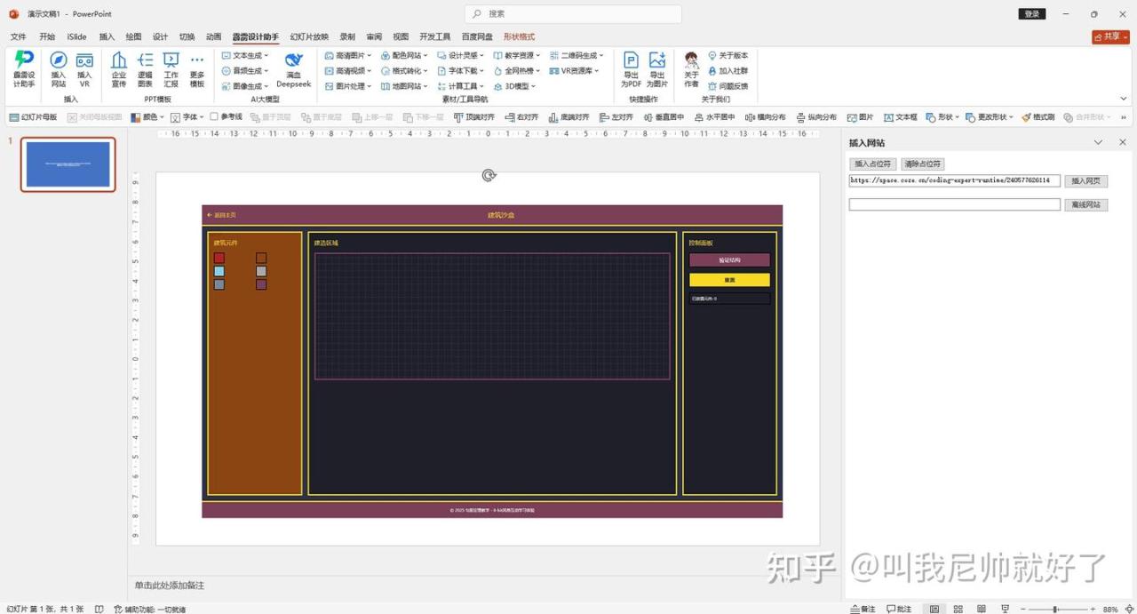 如何一键把扣子和deepSeek写的网页插入到PPT中,课件里面玩游戏学数学!