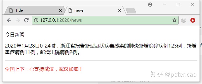 接下来重启一下main.py文件,在浏览器地址栏输入: 127.0.0.1:2020/news,即可获得如下页面: