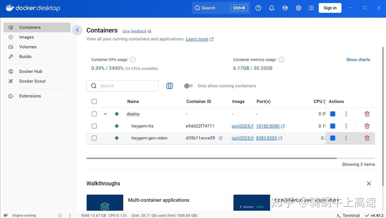 此时打开Docker,在Containers中,点开deploy,看到如下图所示就代表镜像下载成功了。
