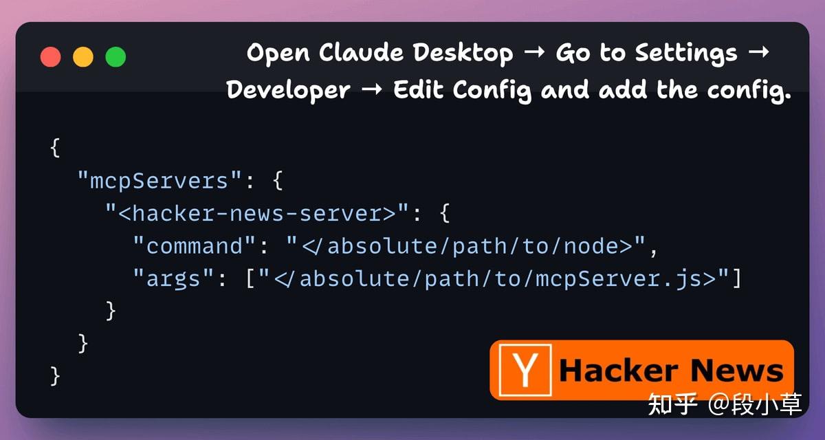 接下来,要将 MCP 服务器与 Claude Desktop 集成,前往 Settings → Developer → Edit Config 并添加以下配置: