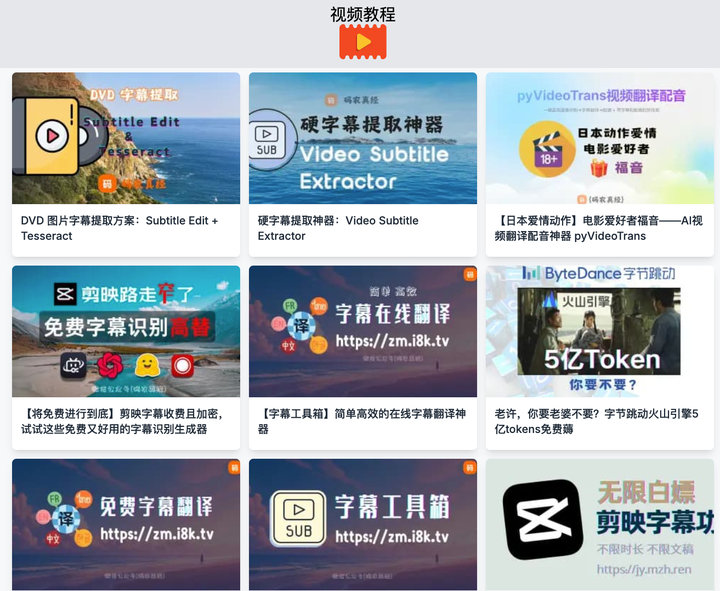 网站还整理了字幕教程与视频制作资源,帮助新手快速入门,也让老手事半功倍