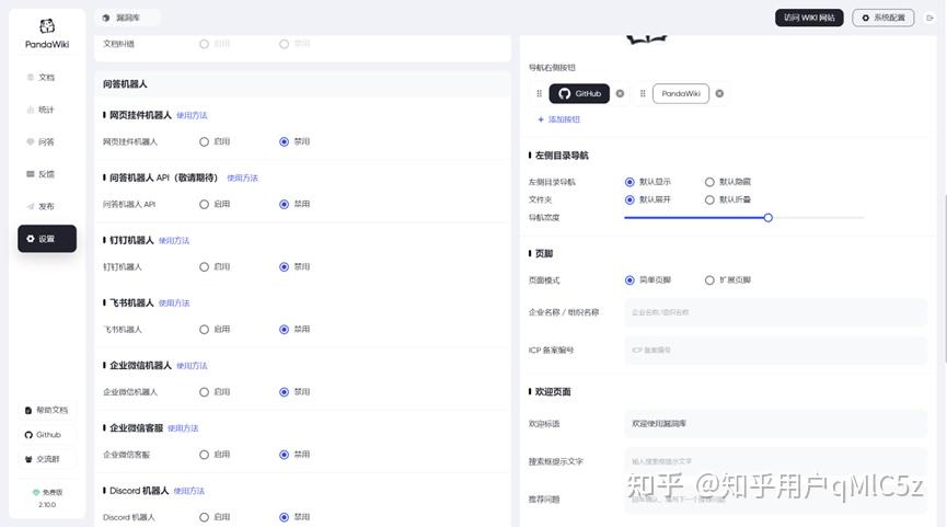 支持网页挂件机器人、钉钉机器人、飞书机器人、企业微信机器人、企业微信客服、Discord 机器人、问答机器人 API功能。