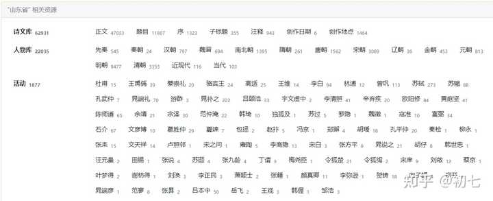 5、古籍文献知识图谱网。将古代诗歌、文章、历史人物等,用年限、地域等维度有机地联系在了一起。